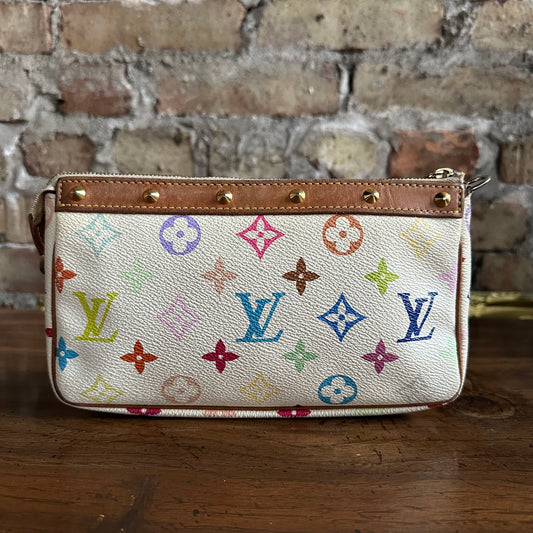 Vintage Louis Vuitton X Takashi Murakami 2004 White Monogram Multicolore Pochette Accessoires