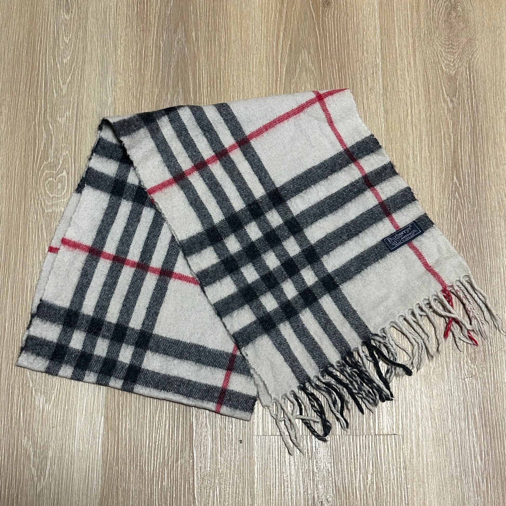 Vintage 90's Burberry Scarf is cream nova check, wool, and rectangular. This is a vintage, pre-owned item with basic wear and fade. Please refer to the pictures and size measurements.