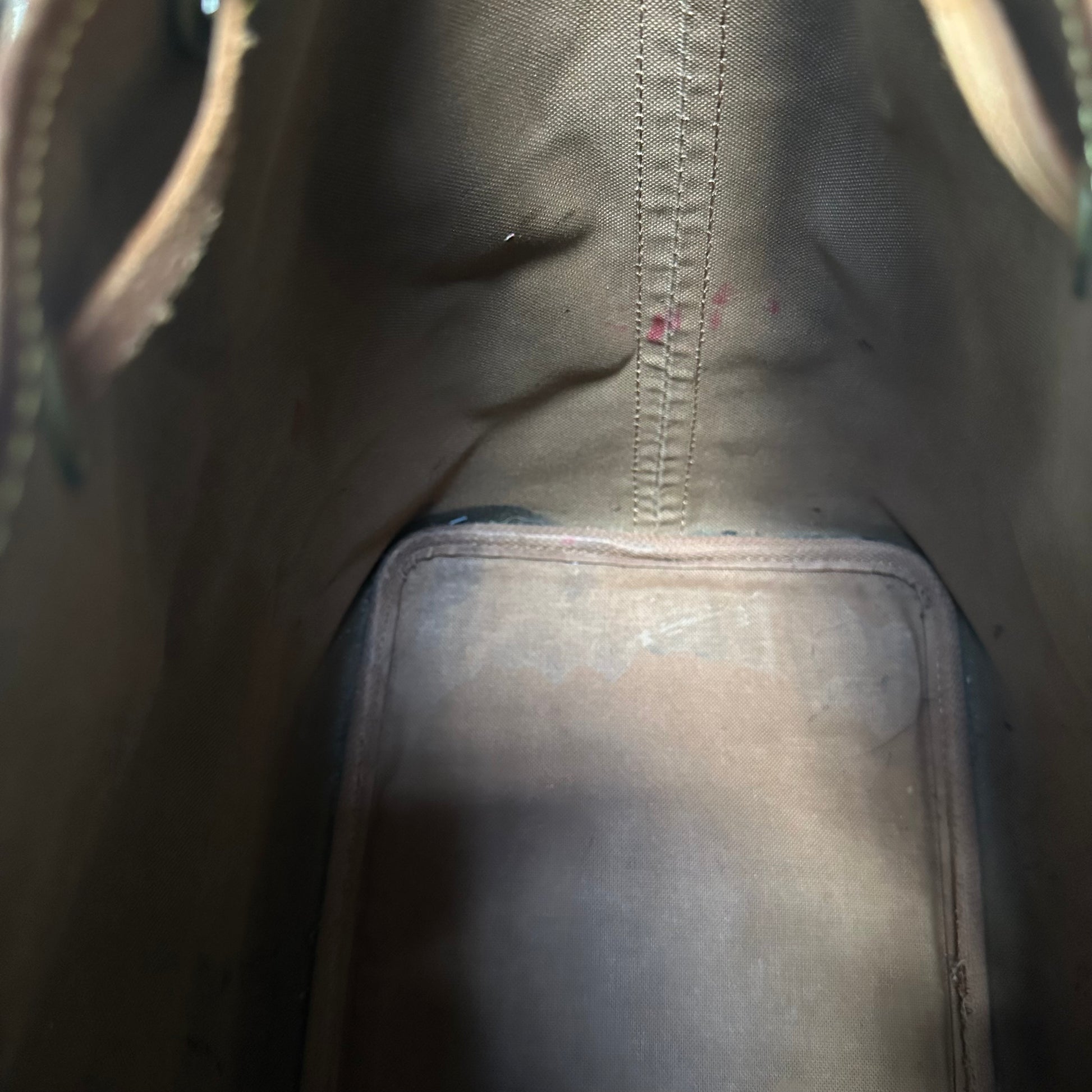 PLEASE NOTE: The date code is worn down and hard to read, as is common with vintage Petit Noe's (refer to last pic). There is some normal vintage wear throughout the leather trim, including darkening, rubbing, and scratches, and some stains on the lining (refer to pics). This is a vintage, pre-owned item with basic wear and fade. Please refer to the pictures and size measurements.